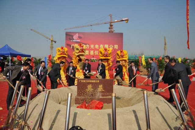 各位領(lǐng)導(dǎo)為廣東德力光電有限公司外延片、芯片生產(chǎn)項目共同奠基。