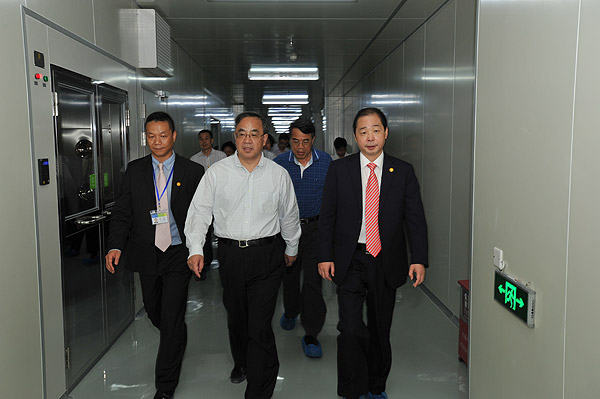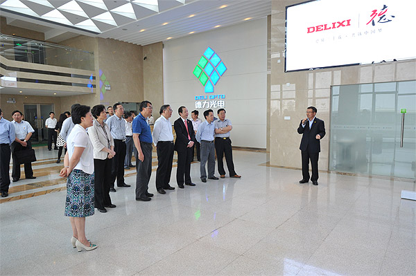之后,在德力西集團(tuán)董事局主席胡成中和德力光電總經(jīng)理王非的陪同下,胡春華一行參觀了德力光電的外延片、芯片生產(chǎn)車間。